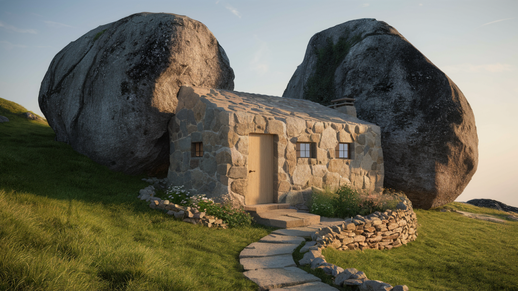 Blending architecture with geology, these homes are literally carved into or nestled between massive stones. From ancient cave-like interiors to modern designs that wrap around natural rock, each space is uniquely sculpted by its surroundings. The stone provides insulation, visual drama, and a deep connection to the landscape. Living here feels like inhabiting the earth itself.