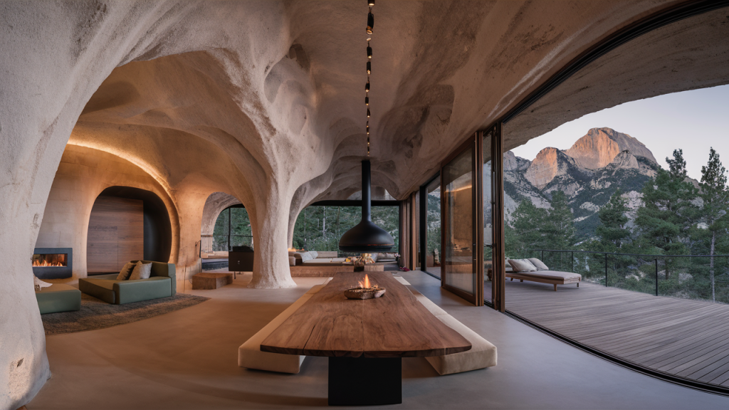 Carved into the sides of rugged peaks, these cave homes combine ancient shelter with sleek, modern design. Natural stone walls offer insulation and an earthy ambiance, while contemporary additions like glass façades and minimalist interiors transform the once-primitive space. Hidden from view and protected by rock, these dwellings offer quiet seclusion and a primal sense of permanence.