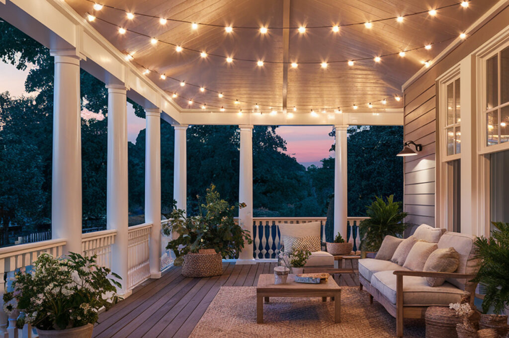 A defining element of modern farmhouse homes is the expansive, inviting porch that extends across the front or wraps around multiple sides. This feature enhances curb appeal while creating a seamless indoor-outdoor connection. Deep overhangs provide shade and protection from the elements, making it a functional space year-round. Often adorned with vintage style furniture, lantern-style lighting, and wood railings, these porches evoke a nostalgic charm while serving as an additional living area. Whether designed for entertaining or quiet relaxation, a well-crafted porch enhances both the aesthetic and practical appeal of the home.