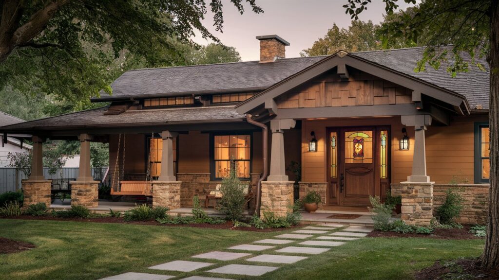 Craftsman bungalows are beloved for their cozy yet functional design, emphasizing handcrafted details and natural materials. These homes usually feature low-pitched roofs, wide front porches with tapered columns, and exposed rafters. The interiors are warm and inviting, with built-in shelving, wooden beams, and open-concept layouts. Found in both cities and small towns, Craftsman homes remain a favorite for their character, durability, and connection to nature, offering homeowners a charming retreat with a touch of rustic elegance.