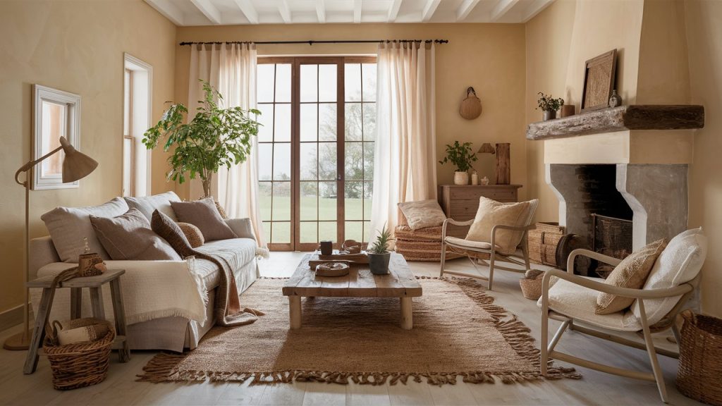 Natural materials pair beautifully with beige and help make the space feel grounded and alive. Wood tones, linen fabrics, greenery, or even a jute rug can work wonders. A few leafy plants or a rustic wooden coffee table will instantly make the room feel intentional and well-styled. Nature-inspired elements add texture and warmth, reinforcing the cozy, organic vibe beige does best.