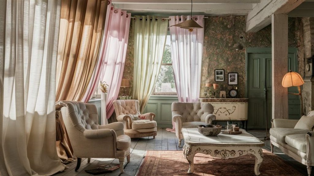 Thick, ornate drapes can weigh down a room and block natural light, making the space feel more closed-off and less inviting. Replacing them with sheer or linen curtains in soft, neutral shades not only brightens the space but also gives it an airy, modern feel. Sheer fabrics allow light to filter in while still providing some privacy. Floor-length curtains bring in an elegant touch that is still casual enough to keep the room comfortable. This small change makes a big difference, creating a more open, relaxed atmosphere while retaining the room’s cozy vibe.