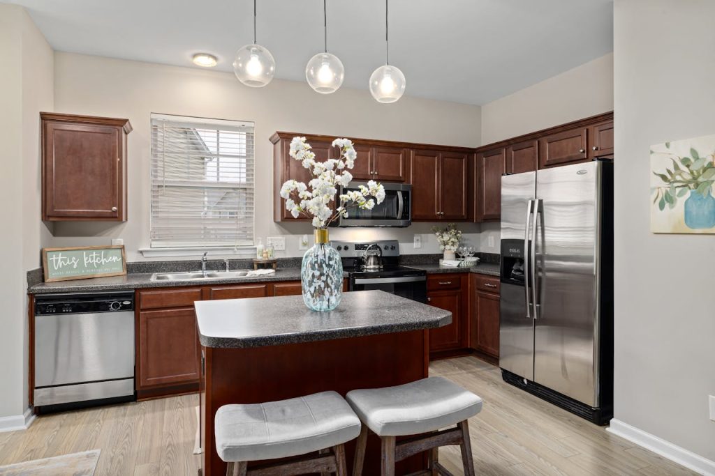 The gap between kitchen cabinets and the ceiling is often wasted, but it can be a smart storage solution. Baskets or decorative bins allow you to neatly store less frequently used items while maintaining a cohesive look. Alternatively, extending cabinetry to the ceiling eliminates the dust-collecting gap and provides additional storage. If you prefer an open aesthetic, a few well-placed decor pieces, like vases or greenery, can add character without making the space feel cluttered. Utilizing this area effectively keeps your kitchen organized while enhancing its design.