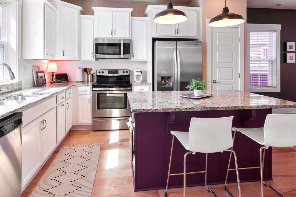 For a kitchen with a touch of drama and sophistication, deep plum is a luxurious choice. This rich, jewel-toned shade brings warmth and elegance, making it ideal for bold, statement-making interiors. Deep plum pairs well with dark wood tones, brass accents, and creamy white walls, striking a balance between moody and inviting. It works especially well in kitchens with high ceilings and ample natural light, where its deep hues can be fully appreciated without feeling too heavy.
