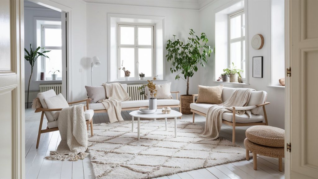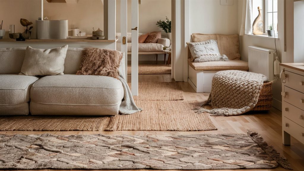 Rugs aren’t just for warmth—they add texture and help define different zones in a small home. Try layering a neutral jute rug with a patterned wool one to bring visual interest without overwhelming the space. This technique is especially useful in open-concept apartments or studio layouts. Stick to soft, muted colors and natural fibers to maintain a cohesive Scandinavian aesthetic while adding dimension underfoot.
