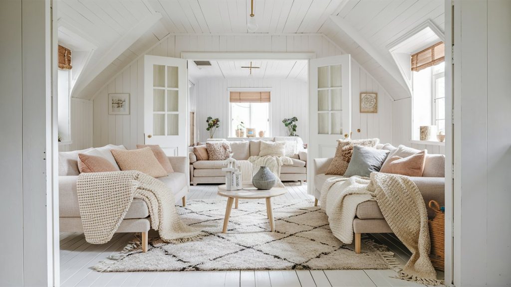 White walls and pale wood finishes are essential in Scandinavian homes, helping to reflect available light and visually expand a room’s size. Soft shades of gray, beige, or muted pastels can add dimension without overwhelming small spaces. Try layering cream rugs, ivory throws, and oatmeal-colored pillows to warm up the room, ensuring it feels welcoming rather than sterile, and keeping the vibe both cheerful and relaxed.