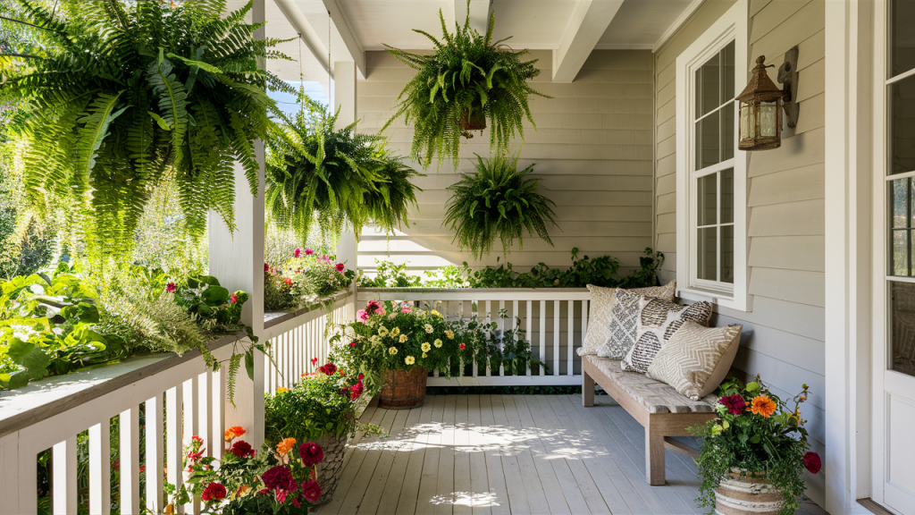 Lush greenery instantly breathes life into a small porch. Arrange potted plants of varying heights along the entryway, using stylish planters to add visual interest. Choose low-maintenance options like ferns, succulents, or colorful seasonal flowers to keep upkeep minimal. Hanging baskets or vertical planters can maximize space in tighter areas. Adding greenery not only enhances curb appeal but also creates a fresh, welcoming atmosphere.