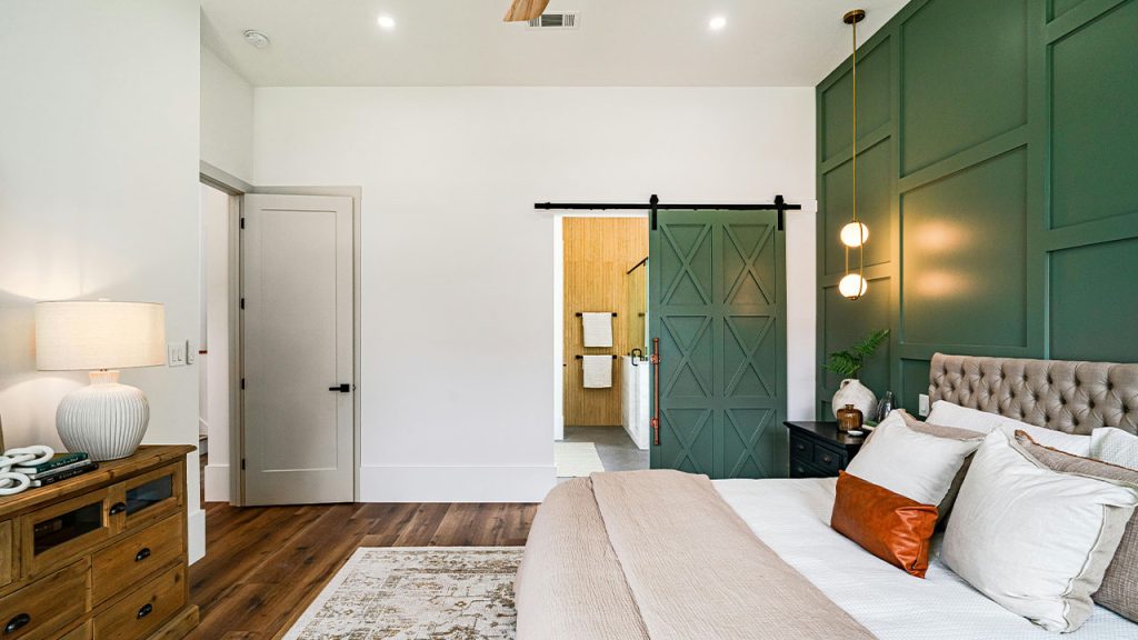 Barn doors are a farmhouse favorite, offering a charming blend of practicality and visual appeal. Whether used to separate rooms or conceal pantries and closets, their sliding mechanism saves space while adding rustic character. Made from reclaimed wood or painted in muted tones, barn doors often become design features in their own right—showcasing classic hardware and enhancing the home’s cozy, handcrafted look.