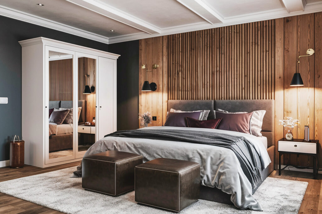 For a modern and dramatic twist, a pearl white ceiling paired with charcoal gray walls creates an ultra-sophisticated and contemporary feel. The light-reflecting pearl white ceiling prevents the space from feeling too dark, while the deep gray walls add contrast and depth. This combination works well in loft-style apartments, sleek bedrooms, or elegant entryways. Enhance the effect with metallic accents, bold artwork, and recessed lighting to highlight the clean yet dramatic contrast.