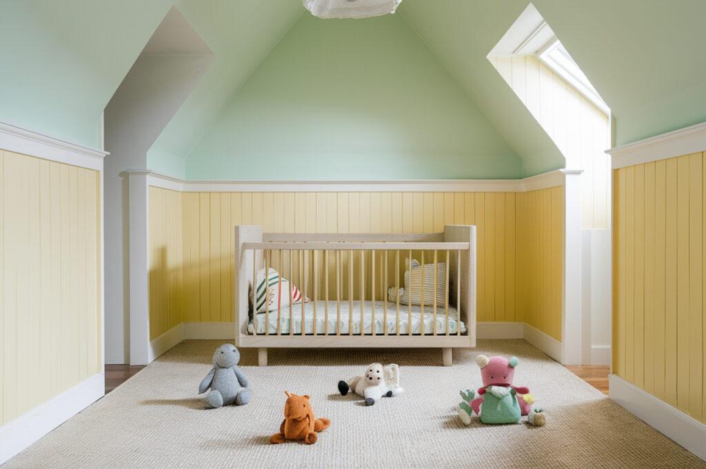 A soft mint green ceiling combined with pale yellow walls creates a fresh and cheerful aesthetic. This uplifting color duo brings a sense of brightness and playfulness, making it a perfect choice for kitchens, nurseries, or casual gathering spaces. The mint green ceiling keeps the space feeling airy, while pale yellow walls add warmth and energy without being overpowering. Pair this combination with white trim, light wood furniture, and natural lighting to create a breezy and inviting space.