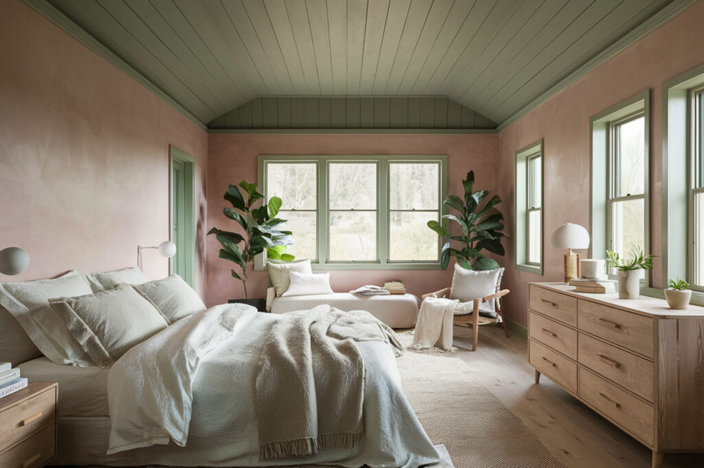 1. Sage Green Ceiling with Dusty Pink Walls