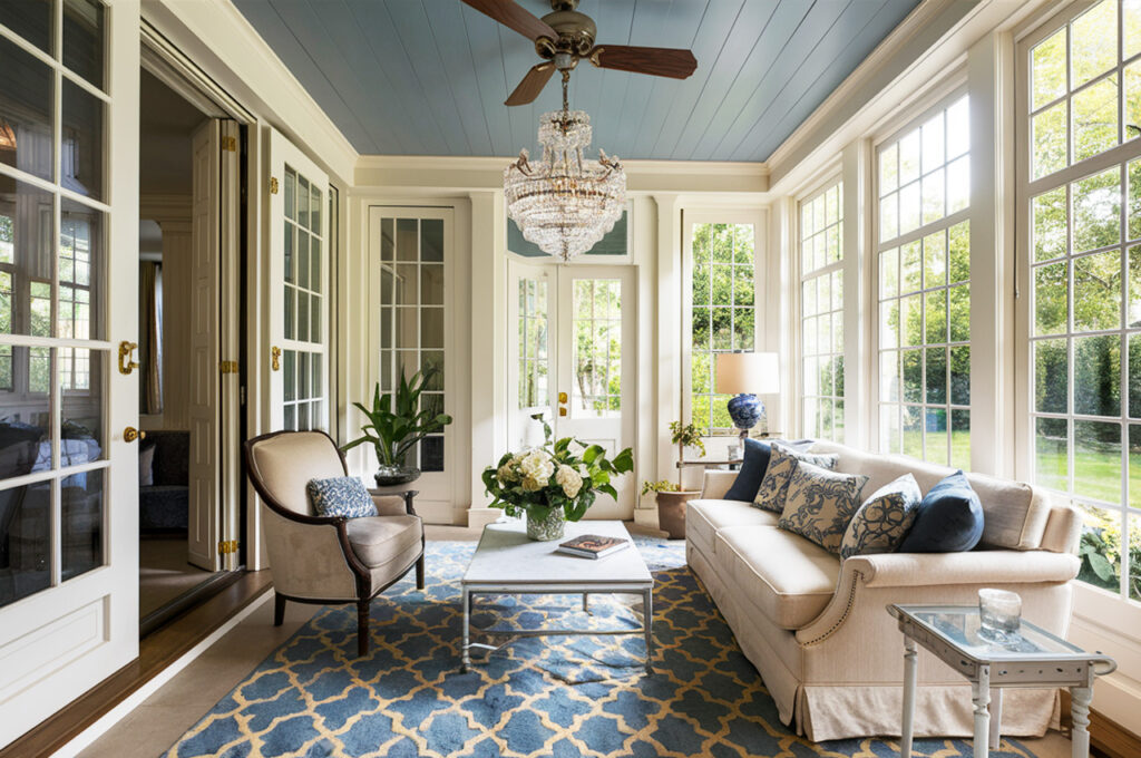 7. Sky Blue Ceiling with Soft Ivory Walls