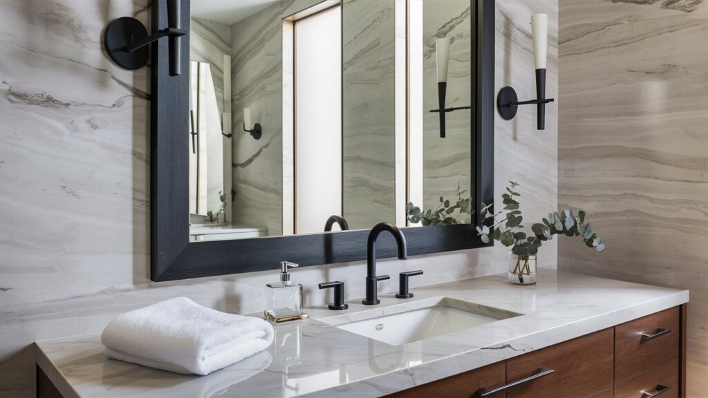 A quick bathroom refresh can be achieved by replacing outdated fixtures such as faucets, towel bars, and showerheads. A sleek black or brushed gold faucet modernizes the sink area, while a rainfall showerhead creates a spa-like feel. Swapping old light fixtures for warm, well-placed vanity lighting improves both function and aesthetics. Adding a new mirror with a decorative frame or replacing a worn-out vanity cabinet enhances the space, making it look refreshed without a full remodel.