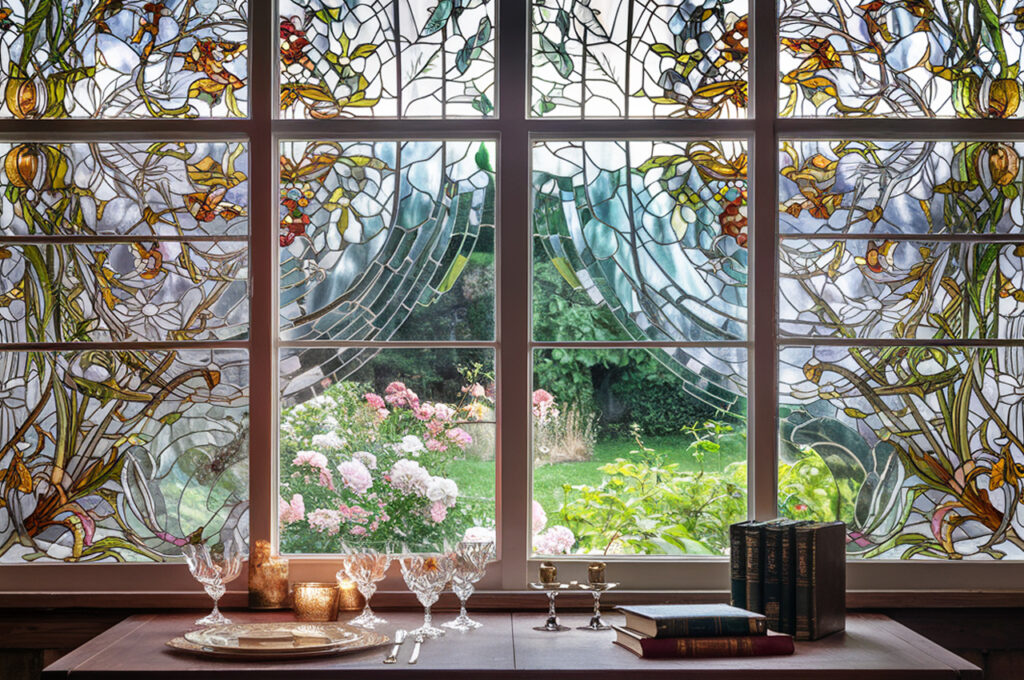 Victorian homes often featured stained-glass windows, adding color and artistry to interiors. If your dining room has windows or a doorway with transoms, consider incorporating stained glass for a period-accurate look. Alternatively, decorative stained-glass panels can be used as wall art or hung in front of clear windows to capture the effect. Whether featuring floral motifs or geometric patterns, stained glass brings a timeless elegance that enhances the traditional Victorian aesthetic.