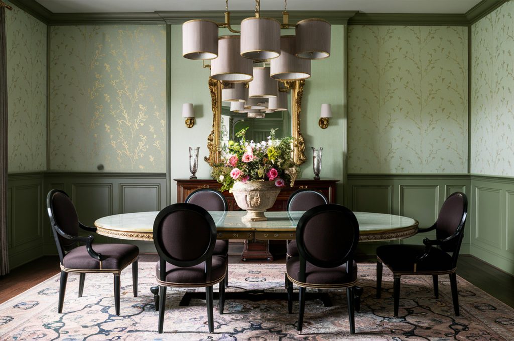 Large, ornate mirrors with gold or carved wood frames are a staple in Victorian interiors. Positioning a mirror opposite a window helps reflect natural light, making the dining room feel brighter and more spacious. Over a fireplace, sideboard, or buffet table, a statement mirror serves as a striking focal point while adding depth to the room. Opt for antique or reproduction mirrors with intricate detailing to maintain the historic charm of the space.