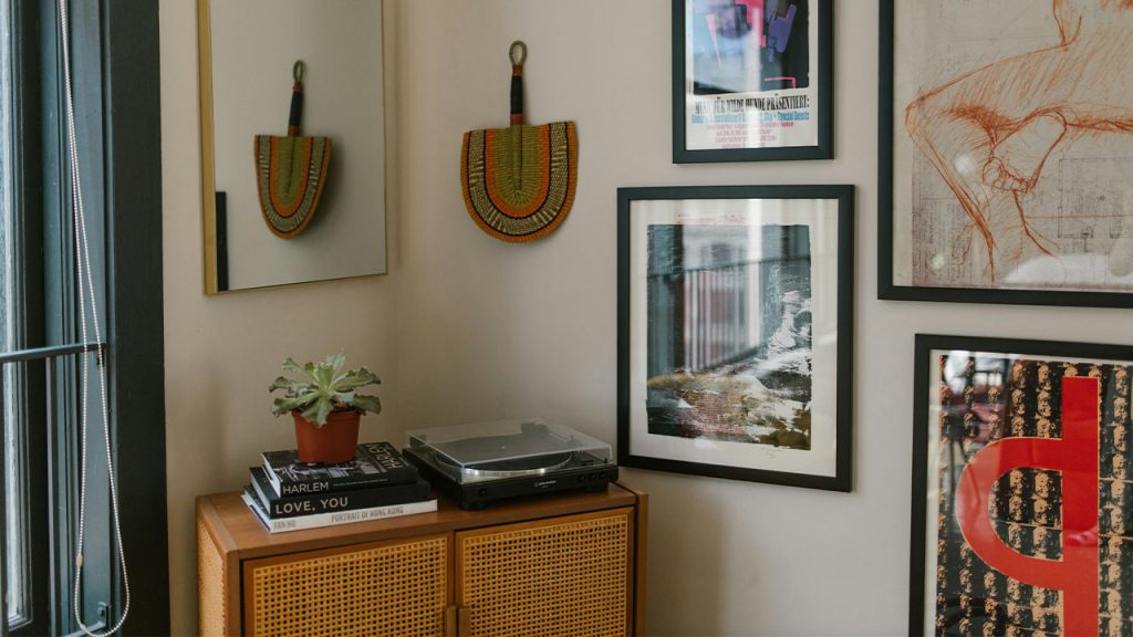 Skipping traditional frames and mounting prints or canvas pieces directly onto the wall creates a sleek, modern look. This casual, art-studio-inspired approach allows for greater flexibility in spacing and layering. Whether it’s a mix of abstract prints, photography, or typography, a frameless collage keeps the focus on the artwork itself, making it feel effortlessly curated.
