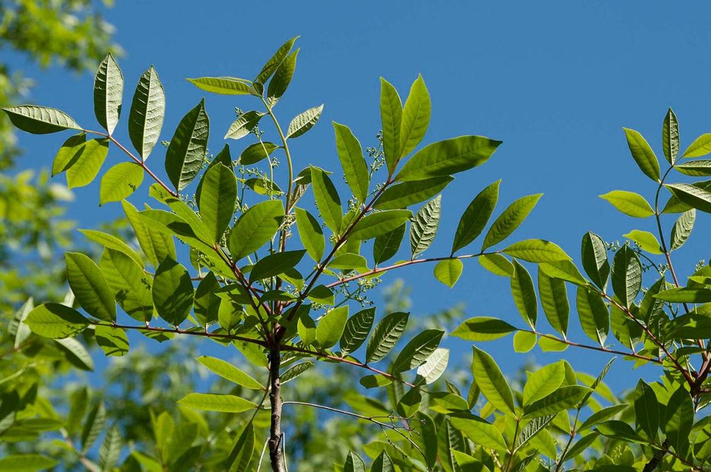 Poison Sumac is a woody shrub or small tree native to wet, swampy areas. It has clusters of glossy leaves and white or grayish berries. Like poison ivy and poison oak, its sap contains urushiol, a chemical that triggers severe allergic skin reactions including itching, swelling, and blistering. Even touching dead leaves or smoke from burning poison sumac can cause irritation. Due to its hazardous nature, it’s best to steer clear of planting poison sumac near homes or play areas.