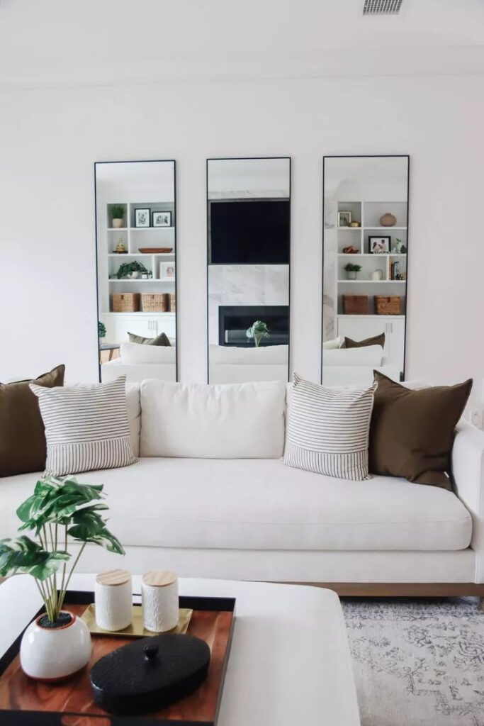 Mirrors are a great tool for enhancing small minimalist spaces. They reflect light and visually expand the room, making it appear larger. Whether you install them properly or use adhesive hooks, placing one or more mirrors can brighten the space and create a sense of openness without cluttering the design. Mirrors amplify the minimalist aesthetic while adding depth and dimension.