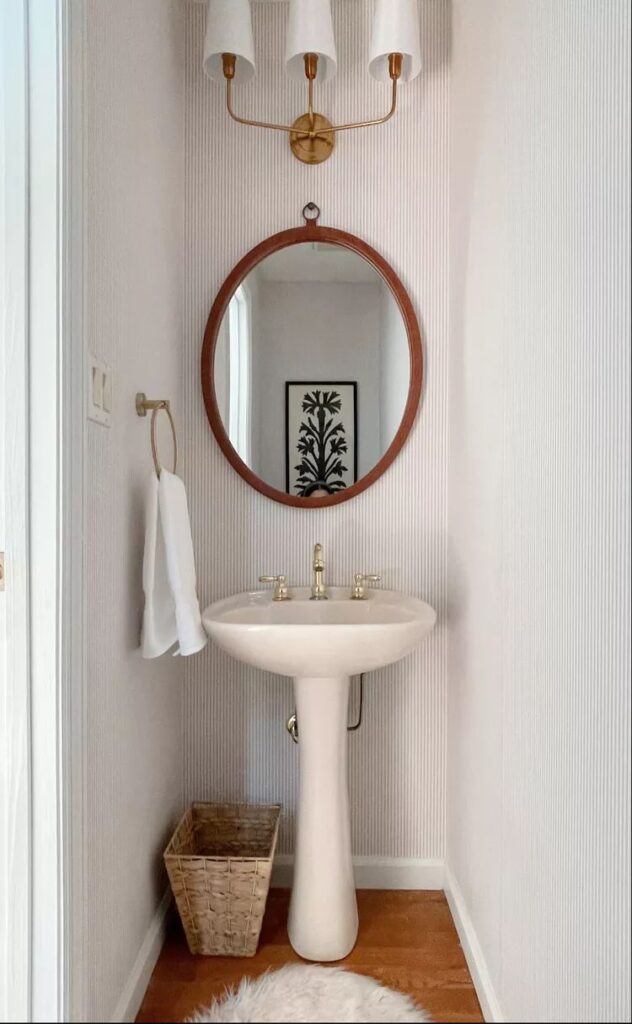 In small spaces like powder rooms, minimalism prevents clutter and creates a calm, functional environment. Opt for understated decor—such as peel-and-stick wallpaper, a framed mirror, and a single piece of art—to elevate the space without overwhelming it. This approach keeps the room clean while adding a unique touch, transforming it into an inviting, stylish area.