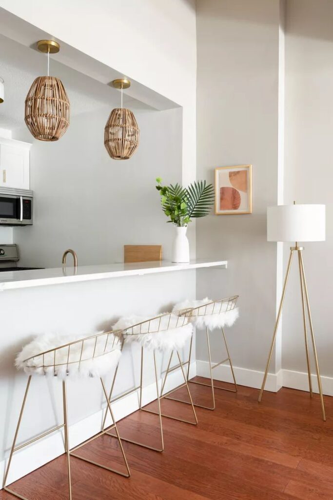 Metallic elements can complement minimalist interiors when used sparingly. A few carefully chosen pieces, like gold candle holders, faucets, or light fixtures, can add a touch of elegance without overwhelming the space. The key is to balance metallic accents with neutral tones to maintain a clean, serene atmosphere while adding visual interest to the room.