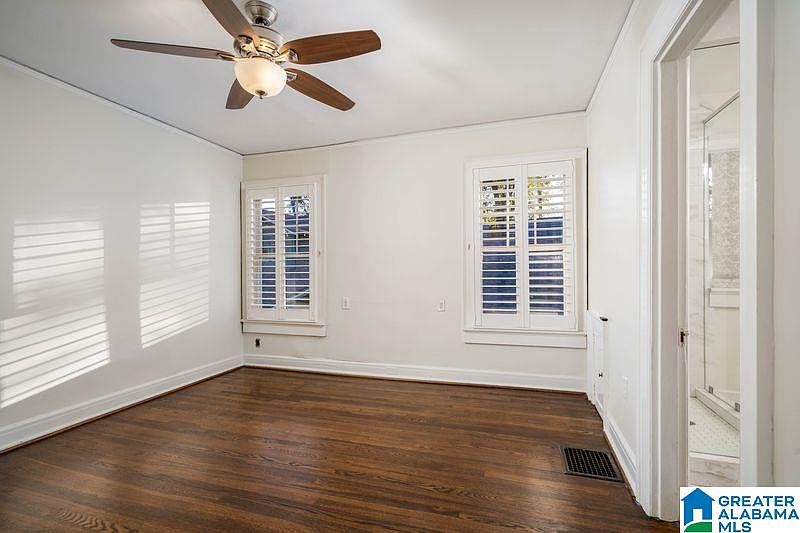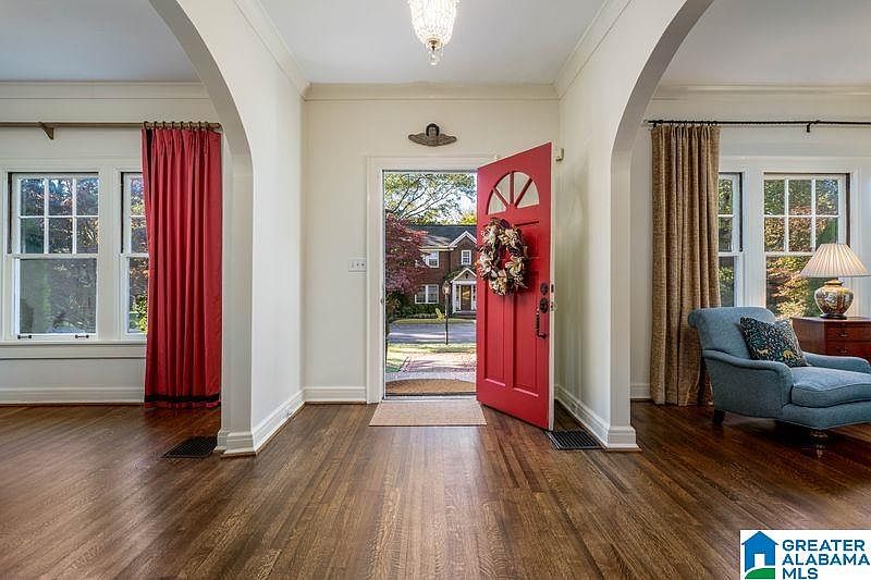 This distinguished 1920s home in Birmingham’s historic Forest Park exemplifies classic American architecture with its symmetrical facade, charming shutters, and inviting red door, reflecting the era’s blend of elegance and craftsmanship. Boasting a modern floor plan within its timeless shell, the home has been updated with fresh interior and exterior paint, a new roof, and renovated bathrooms, offering comfort alongside period details like 10-foot ceilings, gleaming hardwood floors, and vintage fixtures. The main-level primary suite, chef’s kitchen with granite-topped cabinetry, and private rear garden add exceptional value. Situated minutes from UAB and downtown, this 5-bedroom, multiple-bath residence is listed at $1,149,000, offering a rare mix of preserved history and refined modern living. Plot area and square footage are not specified.