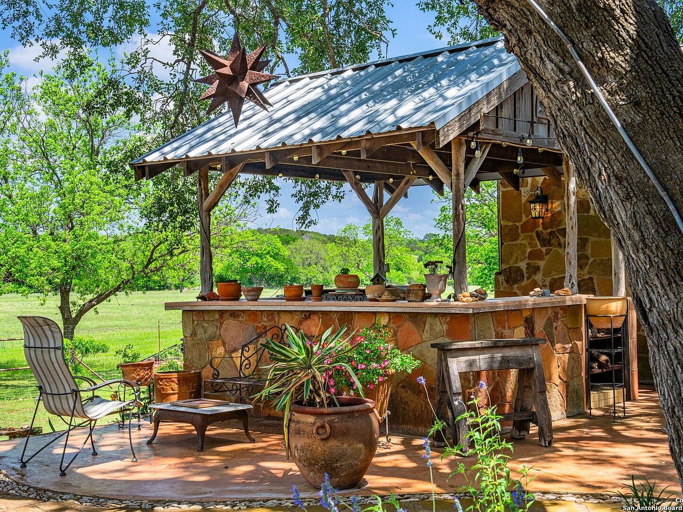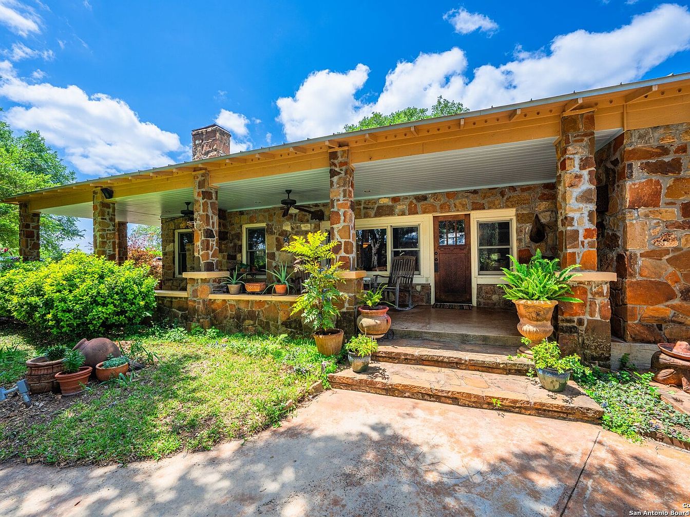 This home is part of the Wedding Oak Winery and Wedding Oak Estate Vineyards and Homestead, a distinguished property located in San Saba, Texas. Reflecting a rustic Hill Country architectural style, the main residence is constructed with native stone and features a large covered front porch supported by stone pillars, harmonizing with the surrounding natural landscape. The estate is set on an expansive 115-acre plot characterized by rolling terrain and 2,100 feet of Cherokee Creek frontage, offering breathtaking Hill Country views at elevations ranging from 1,180 to 1,240 feet above sea level. The main home spans approximately 3,800 square feet and includes three bedrooms and three bathrooms. Additionally, there is a 1,484 square foot rustic creek cabin and several utility outbuildings enhancing the property’s functionality. The listing price for this remarkable property is $5,499,950, offering an exceptional investment and lifestyle opportunity rooted in community, history, and exquisite winemaking.