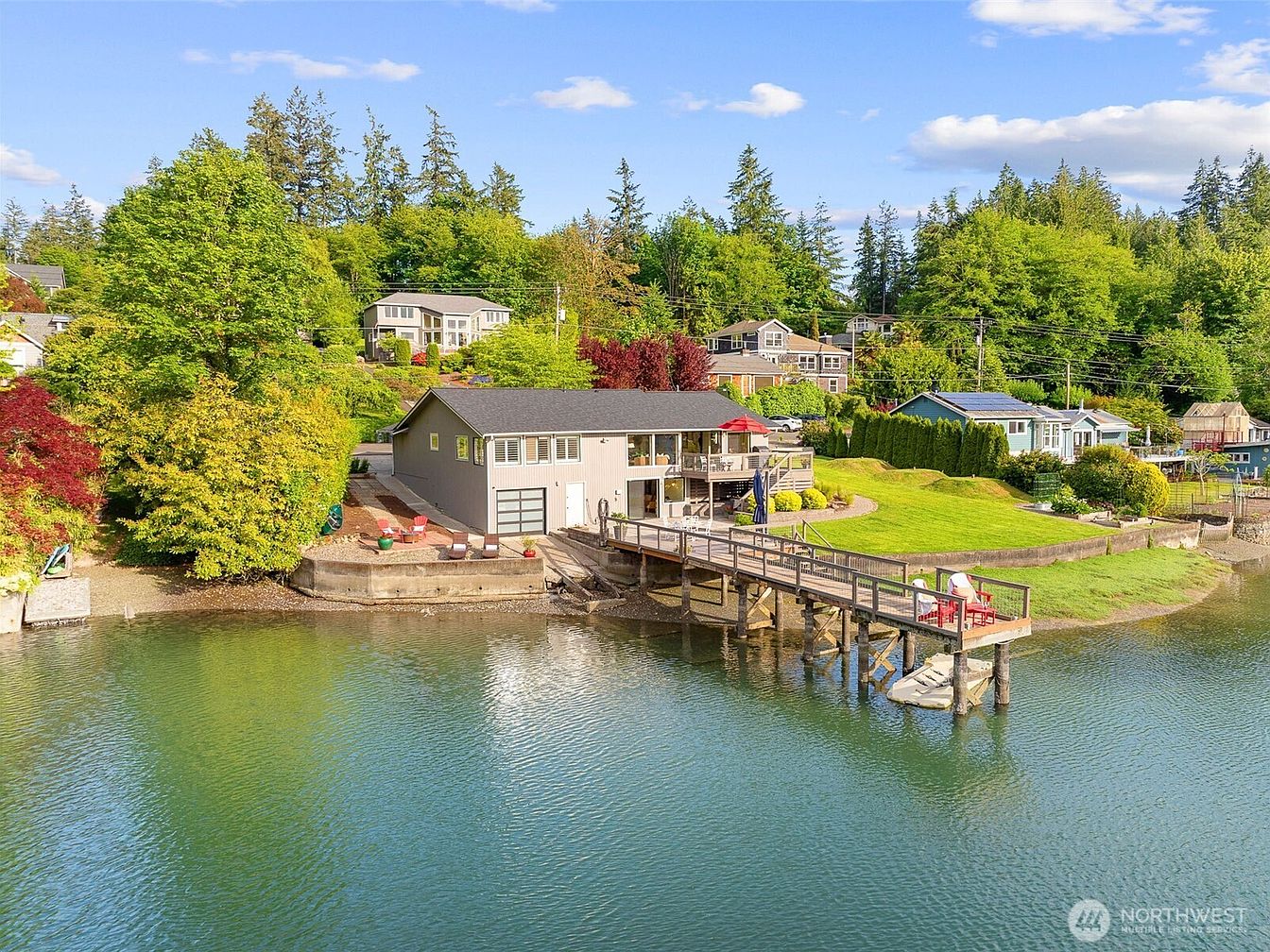 This charming waterfront home in Gig Harbor, WA, is a serene saltwater retreat built with a functional architectural style blending modern and coastal elements. Priced at $1,395,000, this 2-bedroom, 2-bathroom home features high-end appliances and offers approximately 1,700+ square feet of living space with a private dock and boat garage, ideal for boating enthusiasts. The lower level presents flexible use space perfect for a gym, office, or bonus room, while expansive decks and patios provide an entertainer’s dream setting. The home is conveniently located minutes from downtown Gig Harbor, shops, and Highway 16, with easy walking or paddling access to Island View Market and recreational activities like clamming, kayaking, and paddleboarding directly from the backyard.