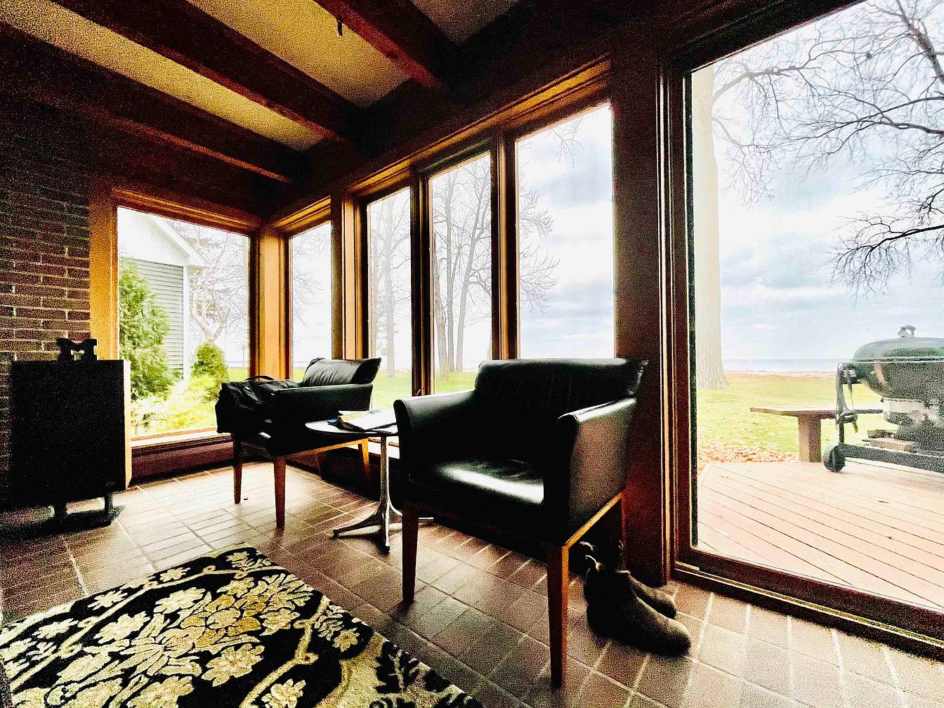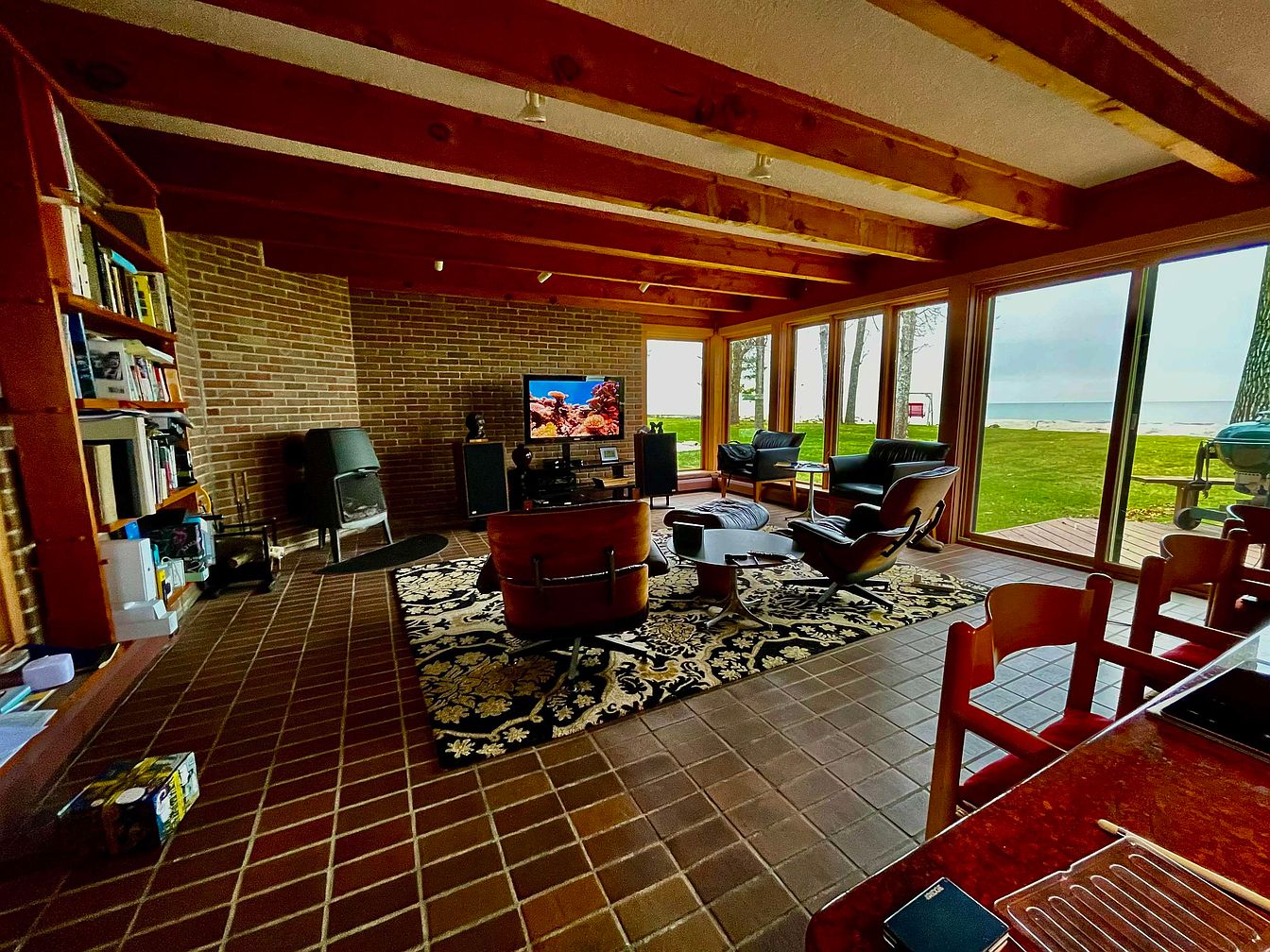 This stunning mid-century modern home, designed by renowned architect Douglas Morris, is located in the picturesque city of Bay City, Michigan. The 2,590 square-foot residence is a one-owner property, showcasing superb craftsmanship and unique architectural details. The home boasts 100 feet of serene bay frontage, with the canal leading to the bay situated just across the street, enhancing its waterfront charm. Key features include a sauna, a versatile music or family room, and a master bedroom complete with an en suite bathroom featuring a luxurious Jacuzzi tub. Offered at $750,000, this unique waterfront property is truly a rare find in Bay City that must be seen in person to fully appreciate its beauty and character.