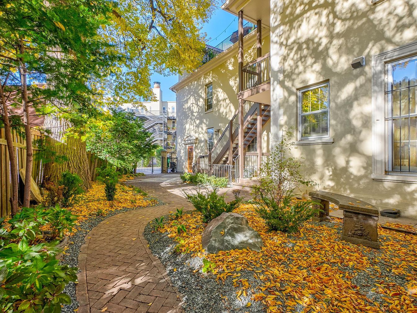Nestled in the historic Summit Hill neighborhood of Saint Paul, this top-floor condo combines luxury with modern conveniences. Built in the early 20th century, its architectural style reflects the grandeur of the era, characterized by stucco exterior and elegant detailing. Recently priced at $1,200,000, the residence spans a spacious layout and features skylights, hardwood flooring, and a beautifully updated kitchen with high-end appliances. Significant renovations, totaling over $600,000, include new Andersen windows and landscaping completed in 2025. The condo offers stunning bluff river views, a maintenance-free deck, and flexible spaces for various uses, perfect for family or guests. With a total square footage and an attached heated garage, this property is move-in ready.