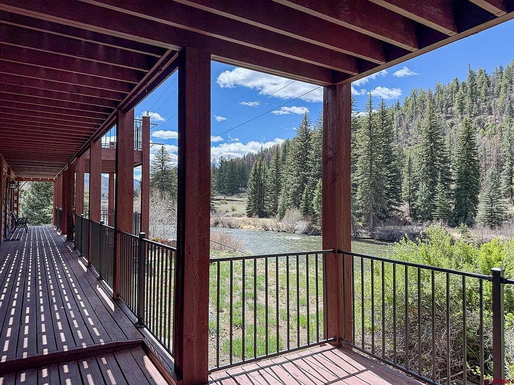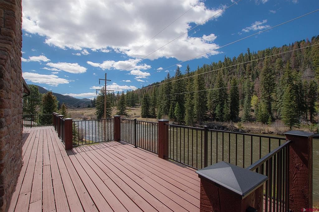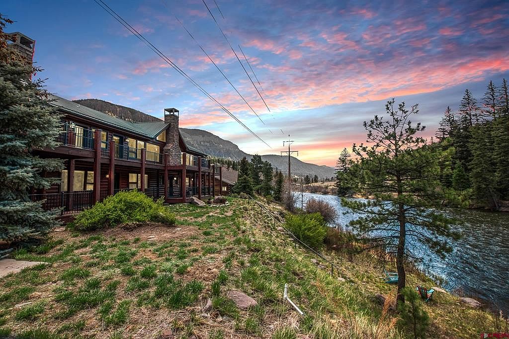 This stunning riverfront retreat located just upriver from the Town of South Fork, Colorado, embraces rustic mountain architectural elements with modern comforts, blending seamlessly into its breathtaking natural surroundings along the Rio Grande River. Boasting over 6,000 square feet of versatile living space on a generous plot that extends to the riverbank, this multi-level estate offers five spacious bedrooms and two fully equipped kitchens, emphasizing privacy and flexibility for large families or guests. The home includes a spacious 3-car garage and an elevator for convenient multi-level access. Outdoor living is highlighted by expansive east and west-facing porches perfect for morning coffee and sunset relaxation, along with a hilltop firepit area providing unforgettable views of the surrounding Palisades. Priced at $1,600,000, this rare Colorado mountain luxury property offers a unique lifestyle close to world-class skiing at Wolf Creek Ski Area, snowmobiling, hiking in the San Juan Mountain Range, fishing right out the back door, and golfing at the nearby Rio Grande Club and Resort.