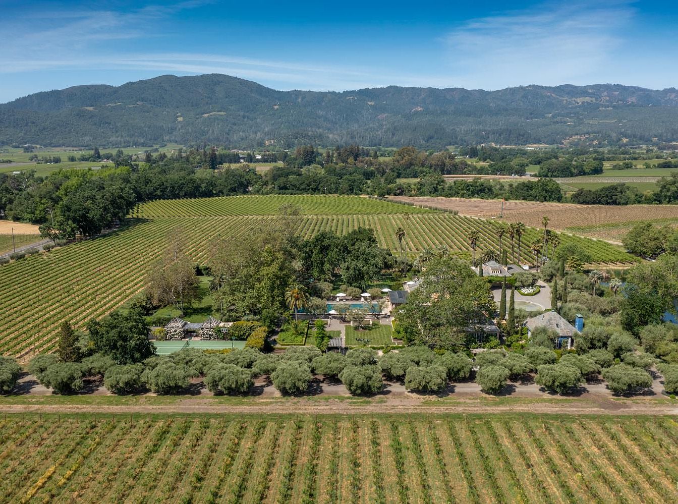 This Rutherford estate, set amidst Napa Valley vineyards, is a legacy compound of exceptional pedigree, blending privacy, luxury, and a wellness-forward lifestyle. Designed by renowned architect Sandy Walker and reimagined by Nicole Hollis, its sophisticated main residence and two guest dwellings provide over 13,400 square feet of elegant, modern living, perfect for families who love to gather or entertain. Its French-country inspired architecture seamlessly connects to expansive terraces, a grand 94’ pool, and curated outdoor amenities like a tennis court, putting green, edible garden, and chef’s kitchen. Enhanced by smart home systems and advanced automation, and priced at $19,950,000, the estate sits in the heart of exclusive Rutherford, California, offering both rare historic significance and state-of-the-art comfort.