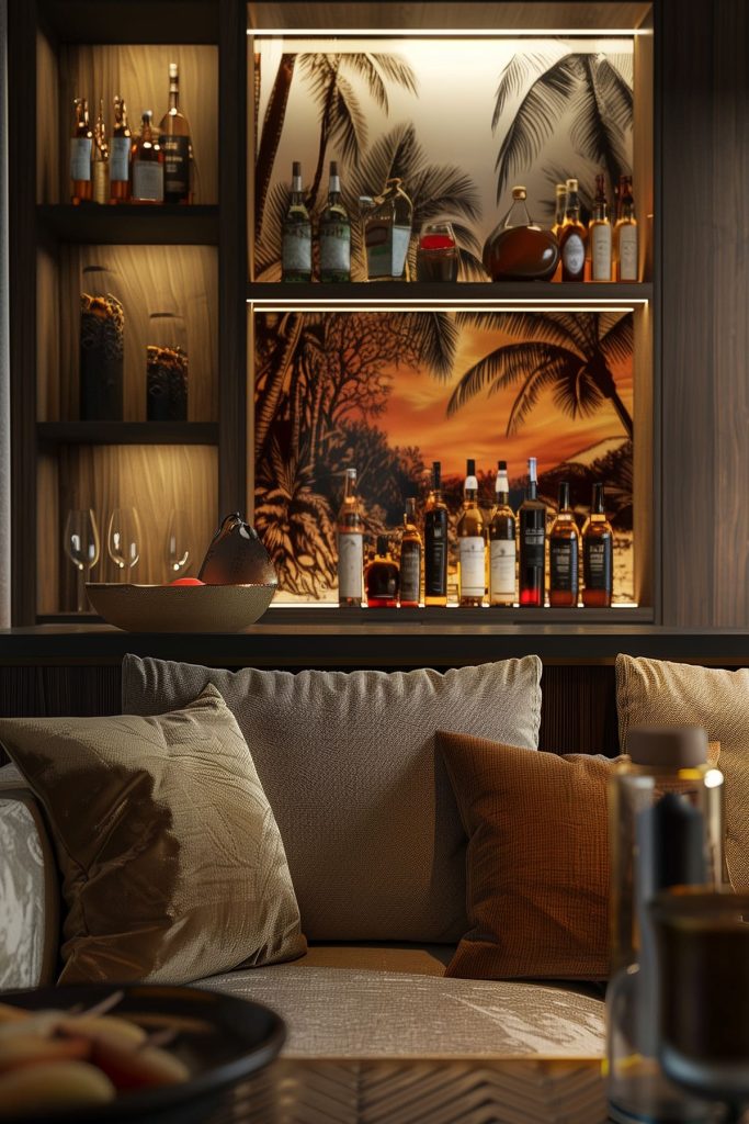 Transform your home lounge room bar into a captivating oasis with themed decor. From tropical paradises to speakeasy hideaways, infuse your space with personality and charm. Immerse yourself and your guests in a curated ambiance that sets the stage for unforgettable experiences. With themed decor, elevate your home bar into a captivating destination where every detail tells a story.