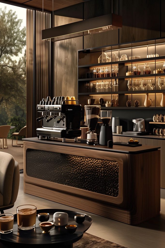 If you’re a coffee connoisseur, consider adding a barista station to your home bar setup complete with a high-quality espresso machine, grinder, and assortment of gourmet coffee beans.
