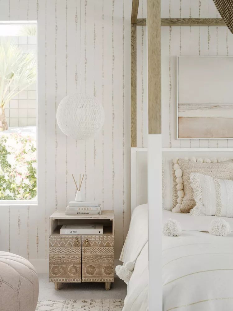 Wallpaper offers an easy way to add depth without bright colors. A neutral pattern—whether it’s geometric, textural, or subtly nature-inspired—can bring character to the walls. Opt for tones like cream, beige, or pale gray to complement your existing palette. A large-scale design can make a big impact, but subtle patterns can be equally as eye-catching when styled thoughtfully.