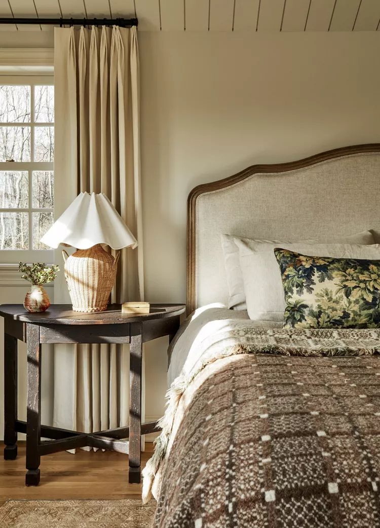 Channel a cozy farmhouse atmosphere by mixing antique or vintage-inspired furniture with soft, neutral linens. Distressed wood bed frames, cotton or linen curtains, and understated beige walls evoke a timeless look. Add a few rustic touches—like a well-worn trunk at the foot of the bed or galvanized metal light fixtures—to complete the inviting, down-to-earth feel.