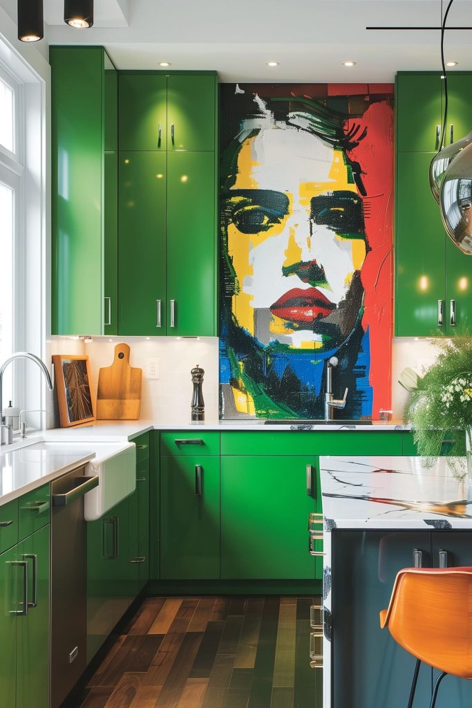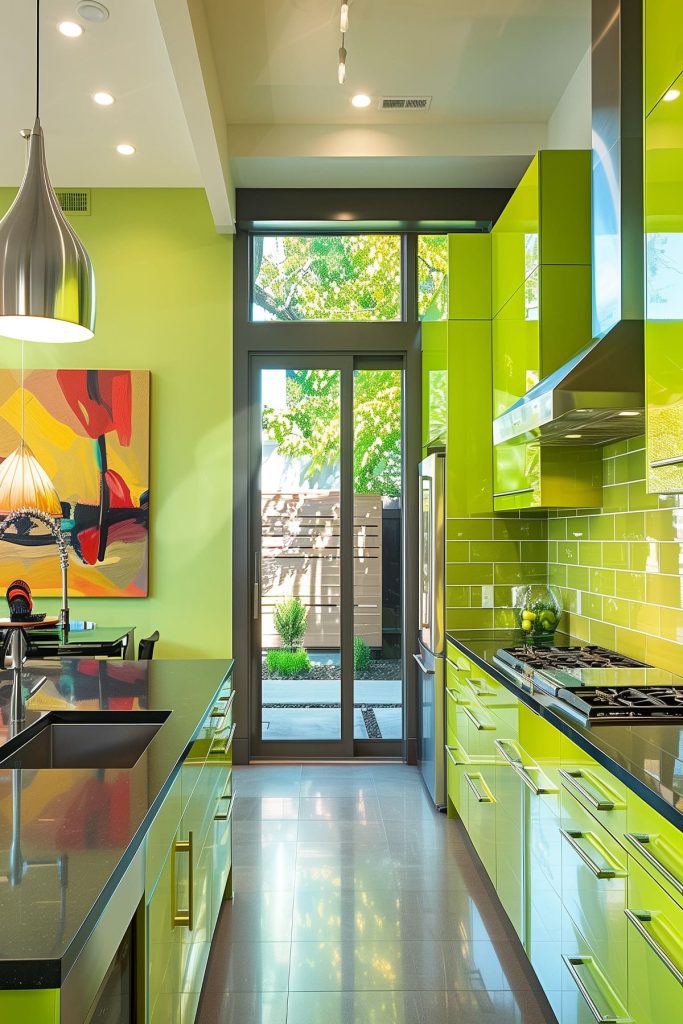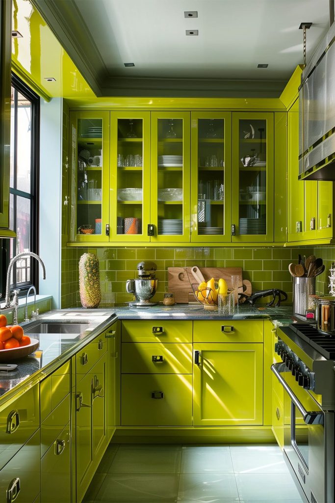 Zesty and energetic, lime green cabinets inject kitchens with a burst of color and personality, ideal for modern and eclectic designs.