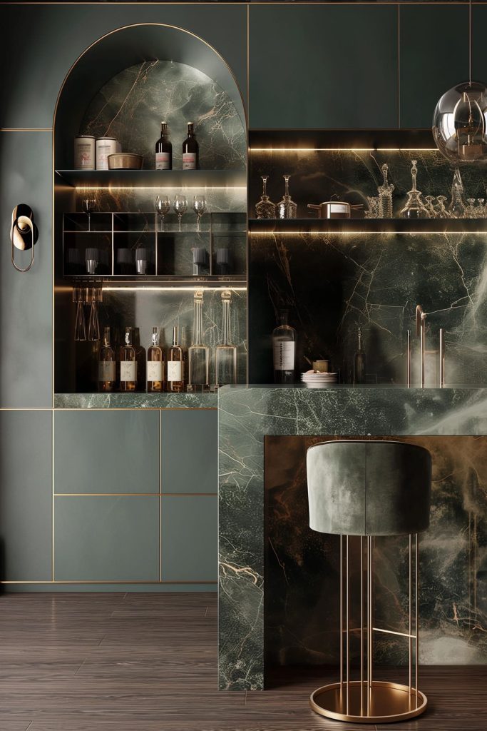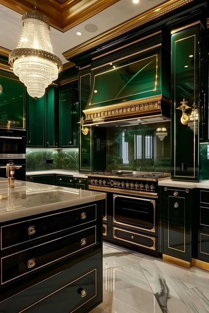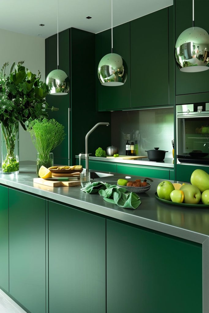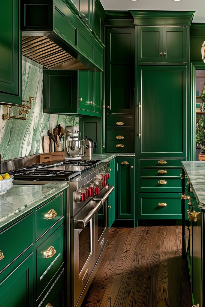 Draped in an aura of elegance and luxury, jade green cabinets exude an undeniable sense of sophistication and glamour, elevating the ambiance of modern and eclectic kitchens to unparalleled heights.