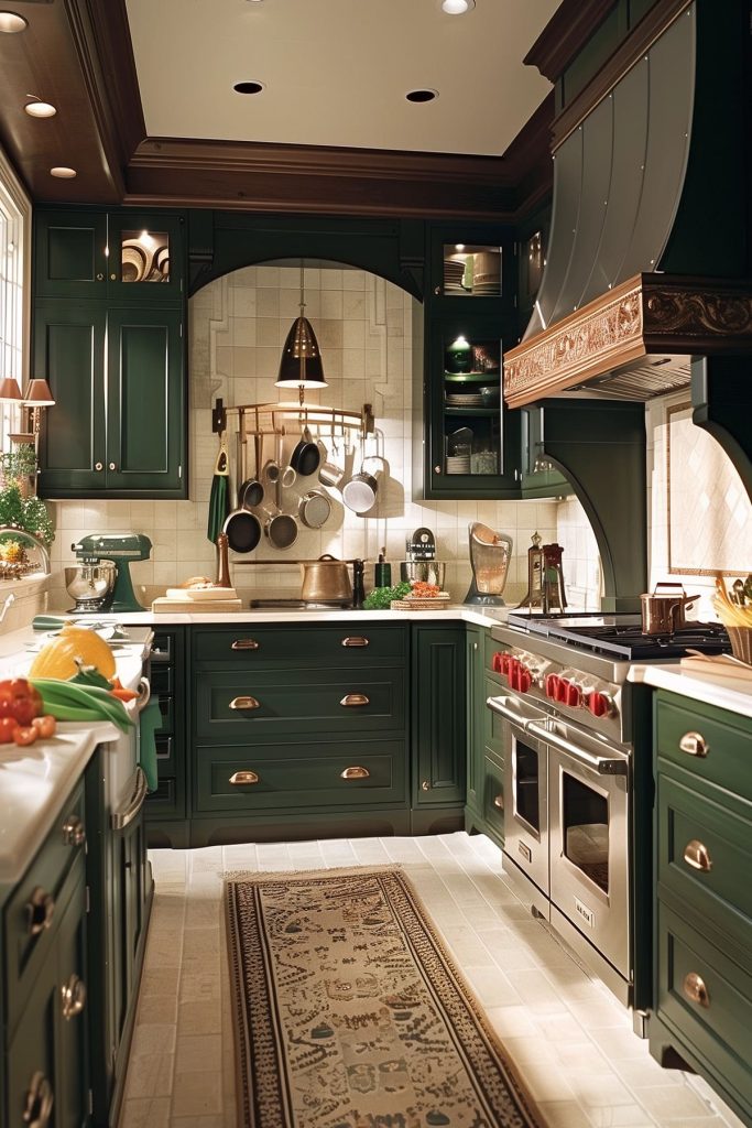Regardless of the prevailing aesthetic, hunter green cabinets seamlessly integrate into any kitchen design, serving as a steadfast anchor that lends a sense of heritage and poise to the culinary environment.