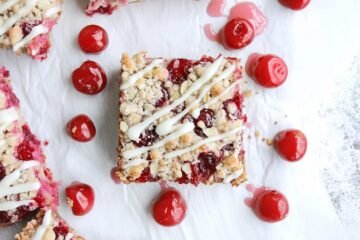 These Almond Cherry Streusel Bars feature a buttery almond crust, a sweet cherry filling, and a crumbly streusel topping. Perfect for any dessert table or a fruity snack.