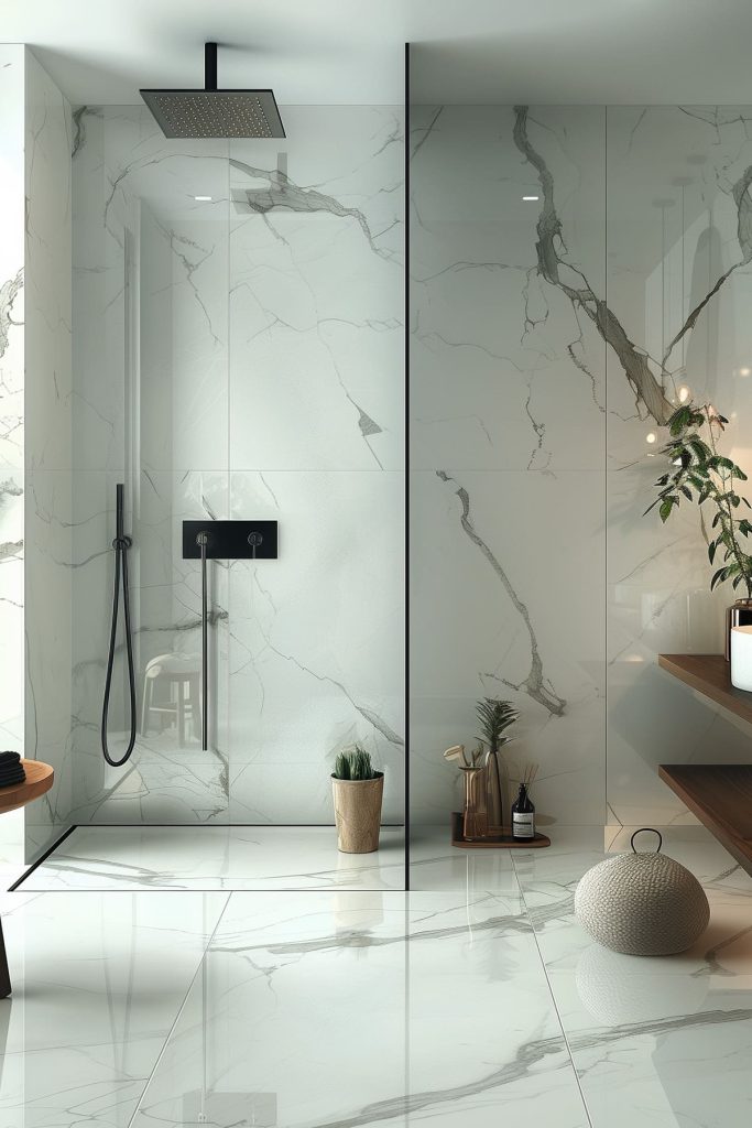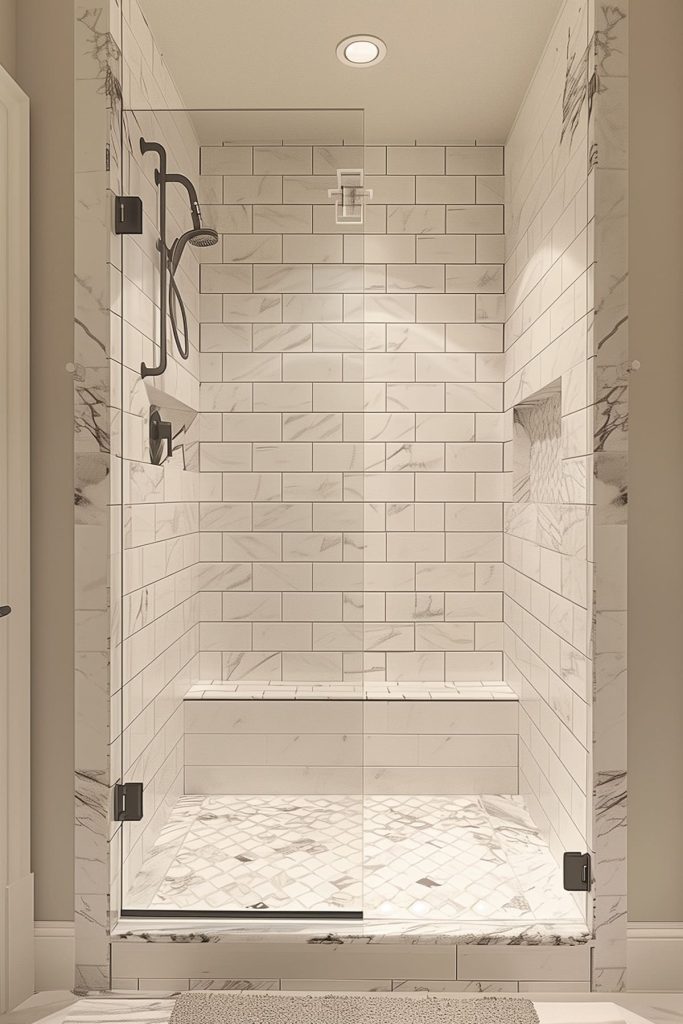 The marriage of these two classic materials creates a shower space that is both luxurious and enduring, blending traditional charm with modern sensibilities.