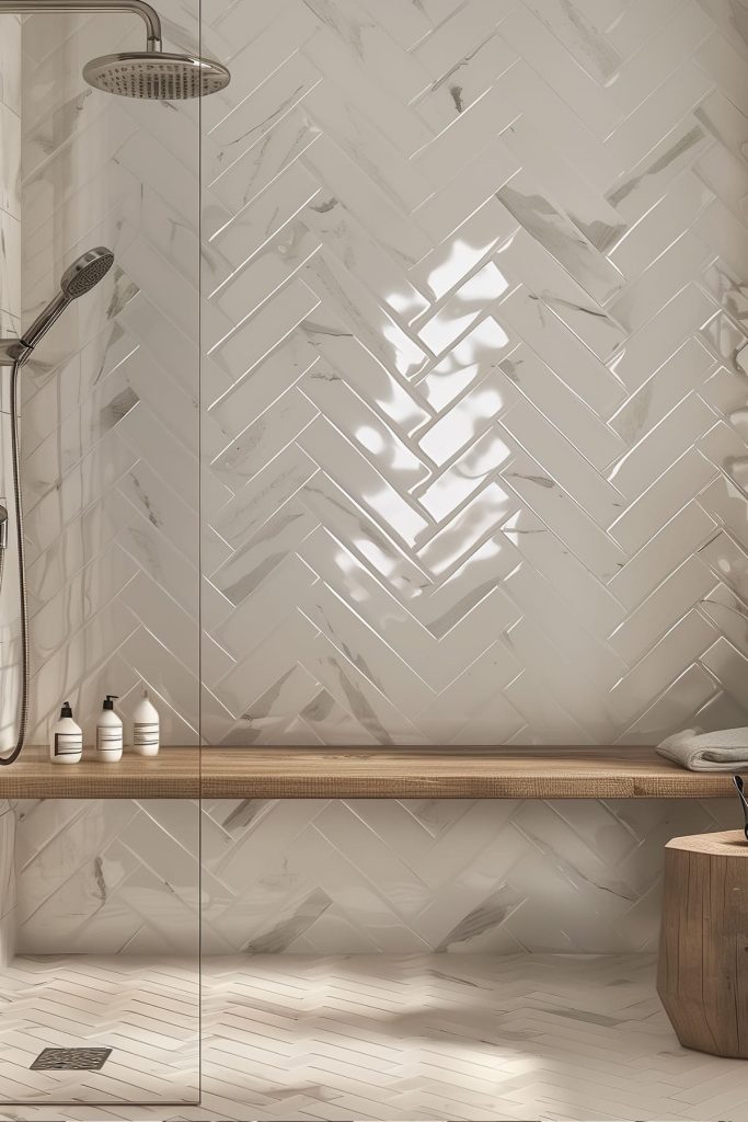 Elevate your shower space with the timeless sophistication of a herringbone pattern in your tile combination.