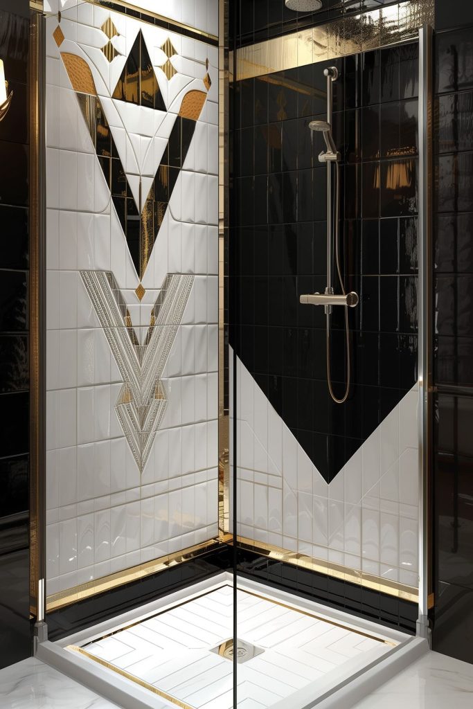 Step into a shower space reminiscent of the roaring twenties with the luxurious allure of Art Deco-inspired designs in your tile combination.