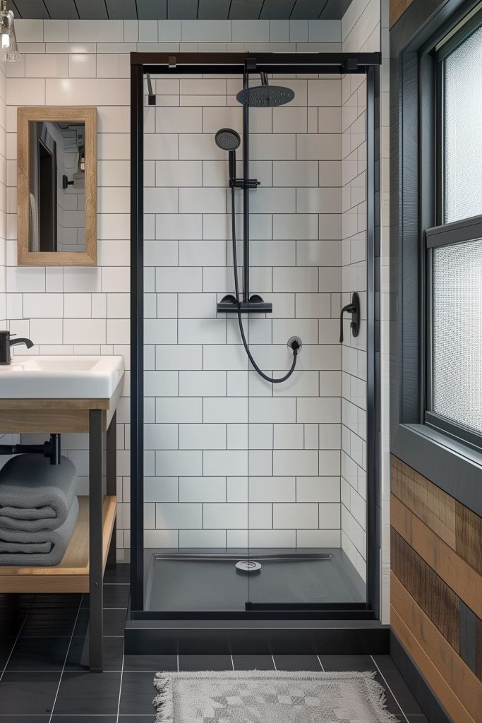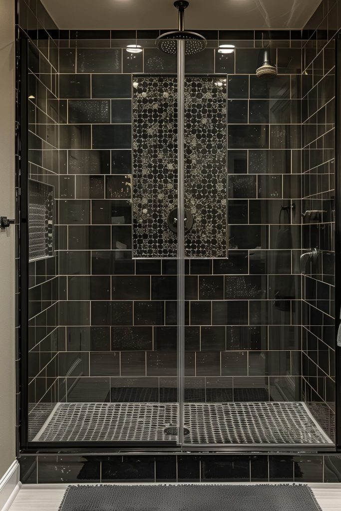 Play with contrasting colors to make a bold statement in your shower. Whether it’s pairing dark tiles with light grout or mixing vibrant hues for a dynamic effect, contrast adds drama and personality to your space.