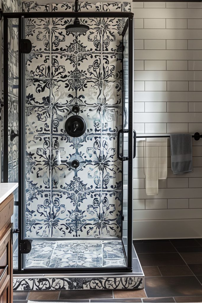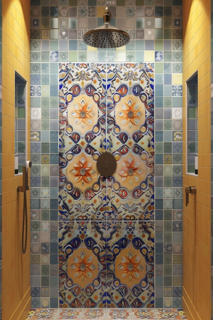 Turn your shower into a canvas with hand-painted or artisanal tiles. From intricate motifs to abstract designs, these unique tiles add a personalized touch to your bathroom.