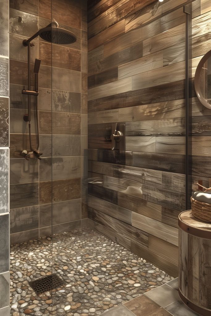Transform your shower into a cozy retreat with the inviting warmth of rustic charm in your tile combination.
