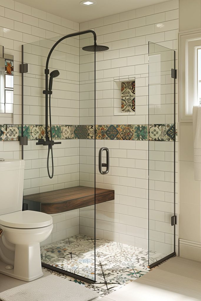 Integrate decorative accent tiles into your shower design to create focal points or borders. These embellishments can range from intricate mosaics to hand-painted motifs that reflect your personal style.