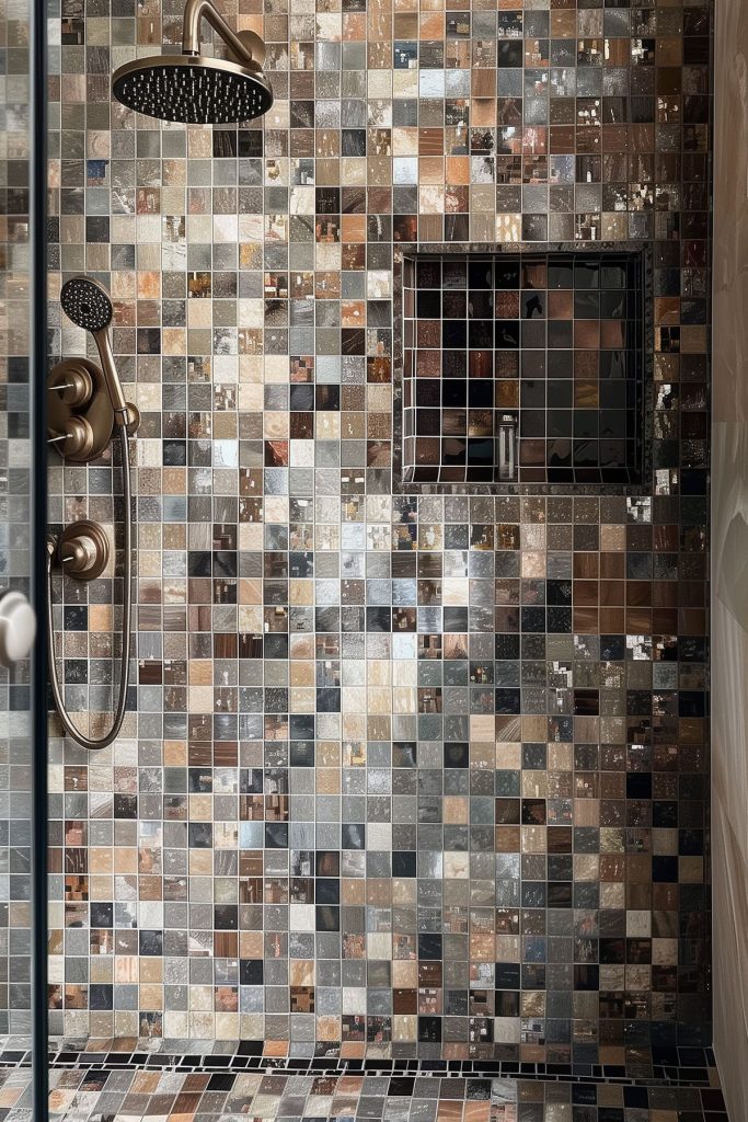 By blending tiles of various colors, shapes, and textures, this approach transforms the shower space into a dynamic canvas, rich with visual interest and personality.