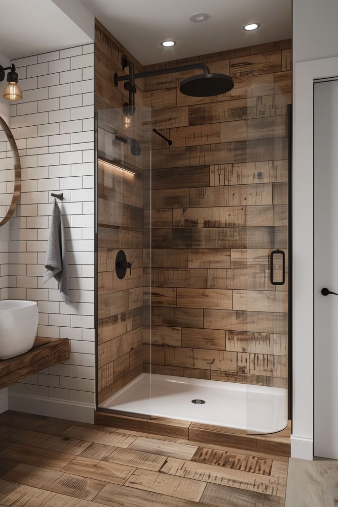Whether you’re seeking warmth and texture or durability and low maintenance, this pairing offers the best of both worlds, creating a shower space that is as functional as it is beautiful.