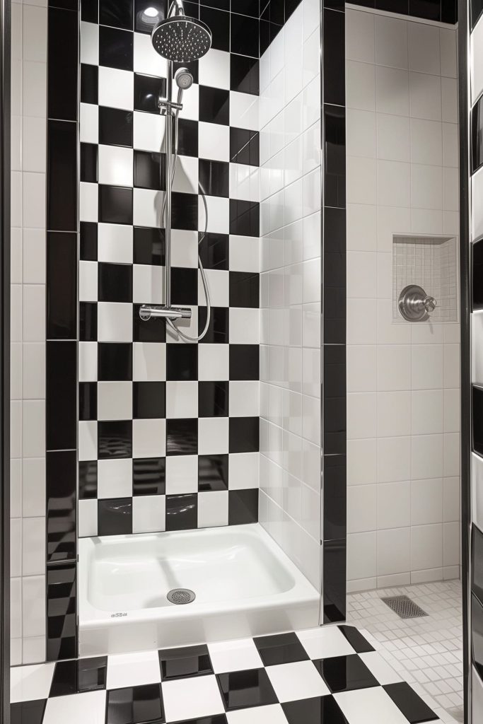 The black and white contrast shower tile combination is a timeless choice that adds instant sophistication and style to any bathroom.