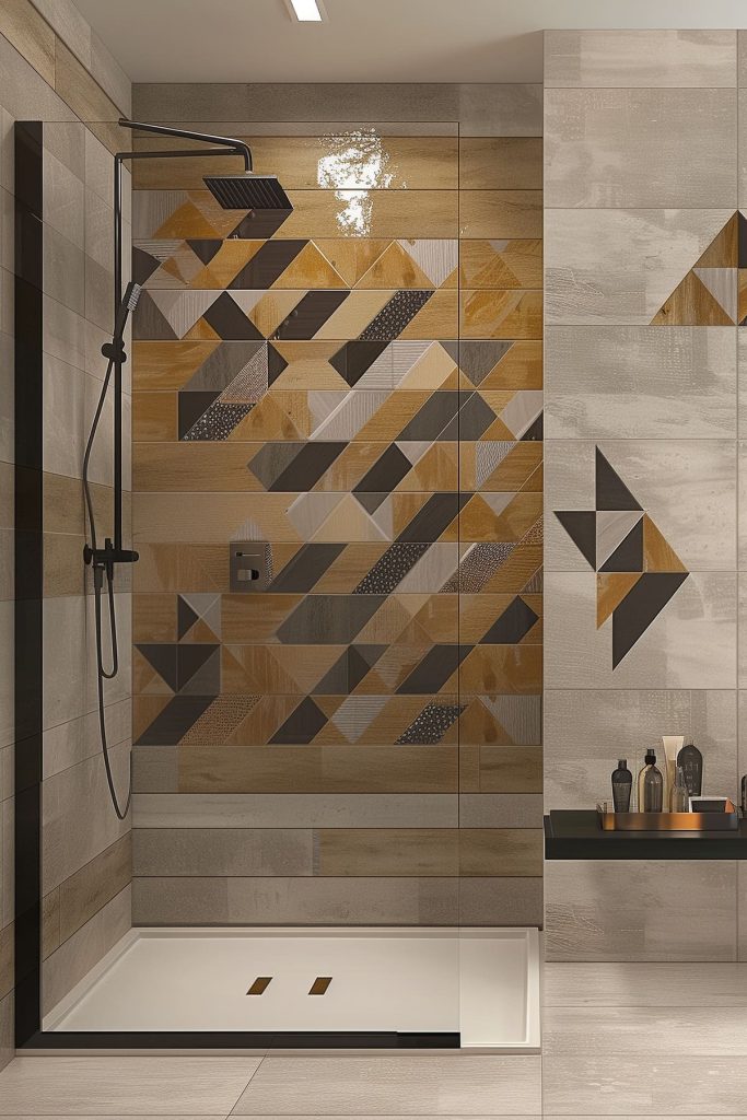 Elevate your shower space with the modern allure of geometric patterns, infusing your bathroom with a chic and contemporary aesthetic.